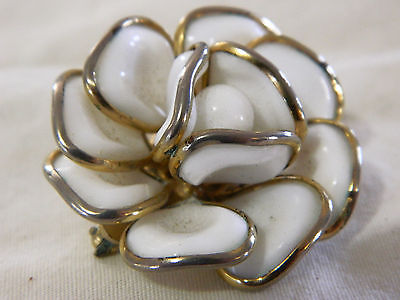 Vintage Trifara White Milk glass 14 Kt gold Trim Rose Brooch Figural 3D Bridal