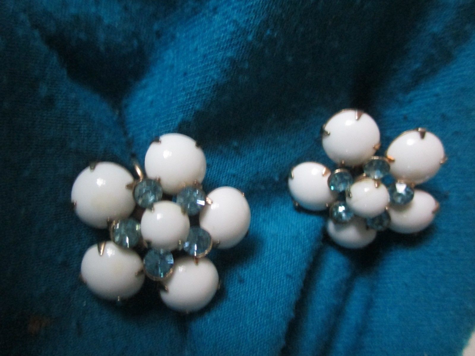 Vintage MILK GLASS WITH BLUE RHINESTONE EARRINGS----622