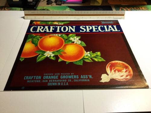 Title (ebay affiliate link): CRAFTON SPECIAL BRAND RARE ORANGE CRATE LABEL MENTONE SAN BERNARDINO VINTAGE