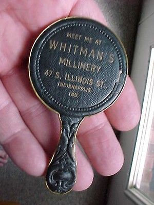 Title (ebay affiliate link): Antique Pocket Mirror Advertising Whitman's Millinery Indianapolis Indiana