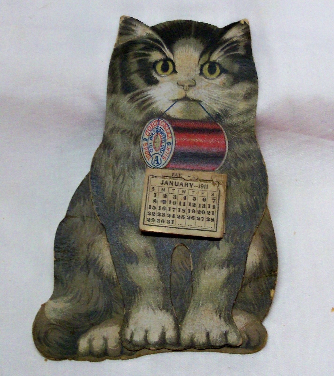 Title (ebay affiliate link): VINTAGE 1911 CORTICELLI SILK SEWING THREAD AD CALENDAR STAND UP SIGN KITTEN