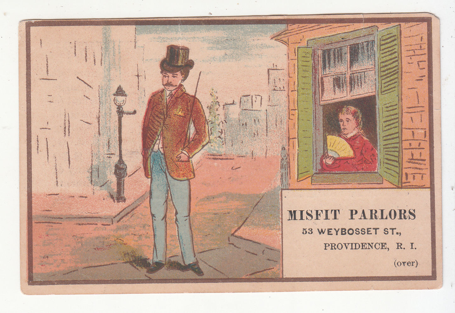 Misfit Parlors Clothing Providence RI Window Fan Vict Card 1880s