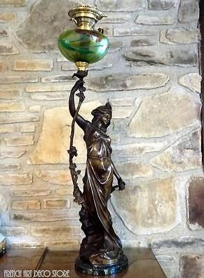 Title (ebay affiliate link): French Art Nouveau "NYMPHE des BOIS" Banquet Oil Lamp signed c1900
