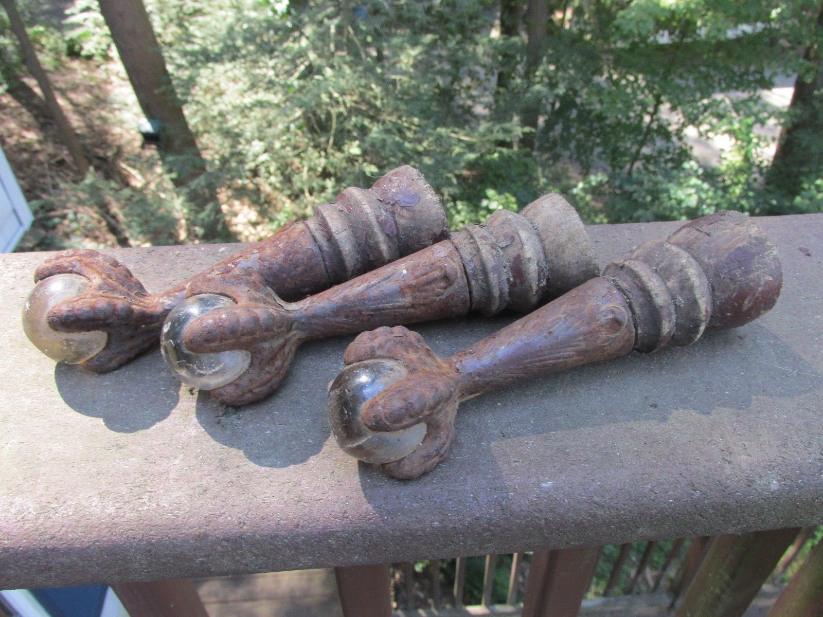 Title (ebay affiliate link): Antique Rusty Metal Feet & Glass Ball Stool Bench Table Chair Furniture Salvage