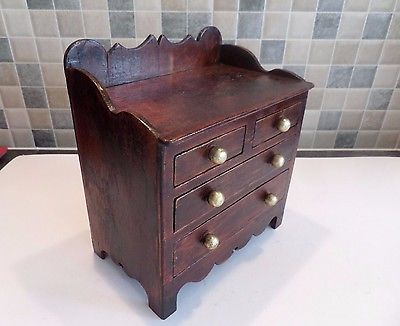 Title (ebay affiliate link): ANTIQUE MINIATURE CHEST OF WOODEN DRAWERS WITH BRASS COATED KNOBS- DATED 1888