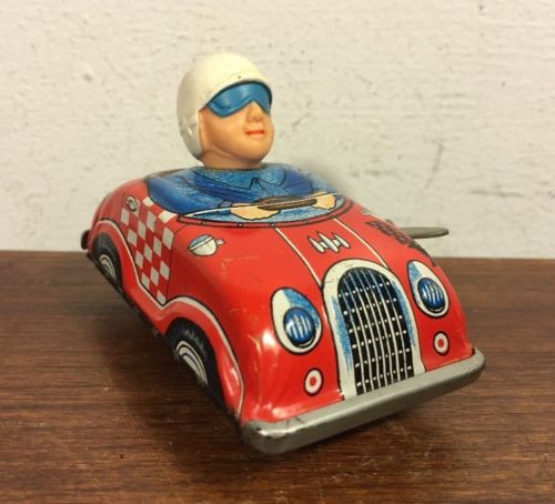 Title (ebay affiliate link): Vintage Tin Wind Up Mark Y #26 Race Car Guy Big Head Japan