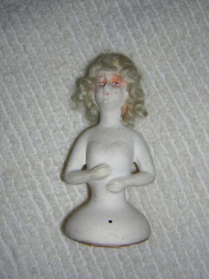 ANTIQUE MKD.GERMANY HALF DOLL - PIN CUSION, PLASTER