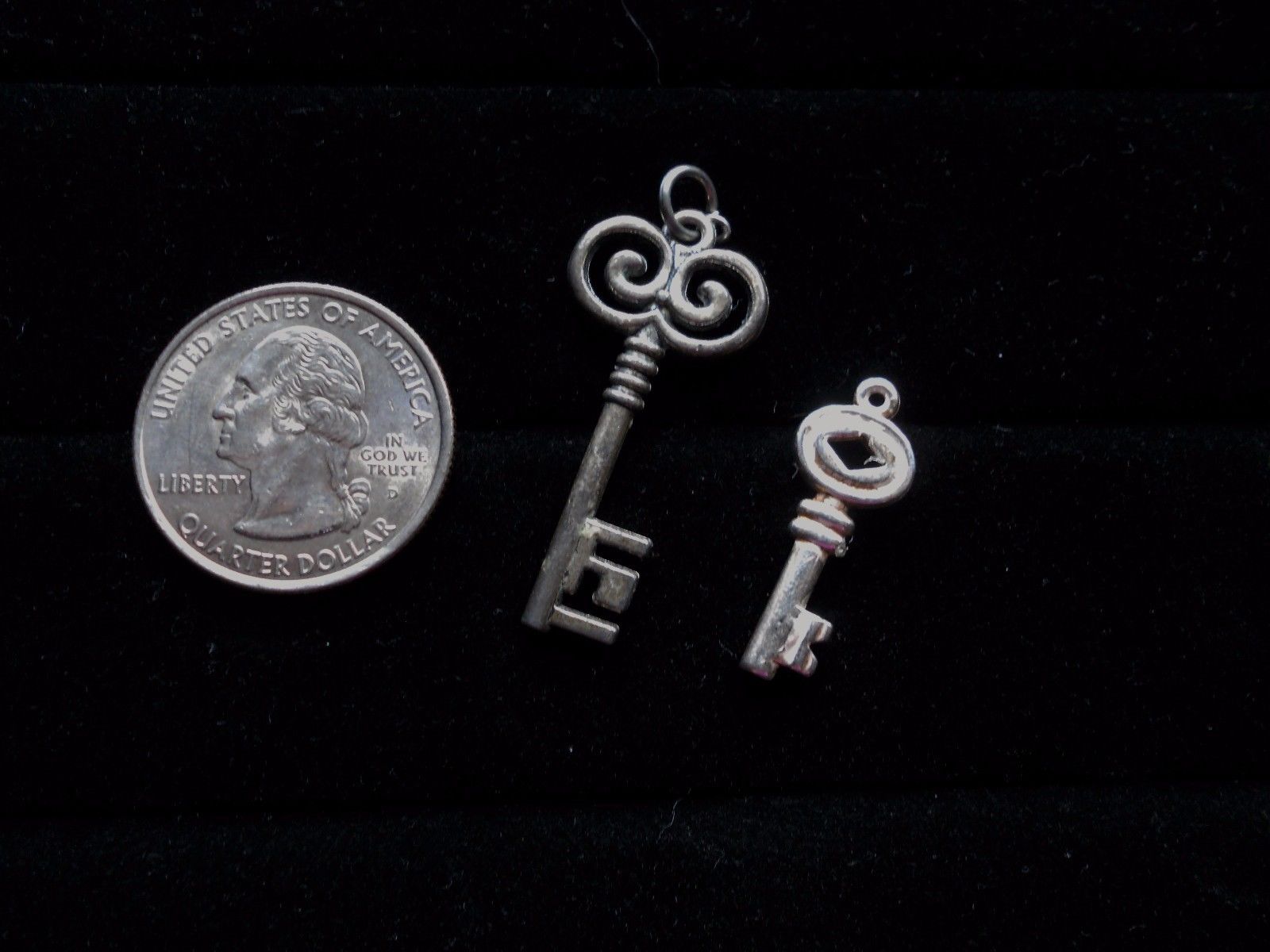 Title (ebay affiliate link): Pendants Charms LOT TWO Vintage Styled Keys Antiqued Silver Tone No Chains