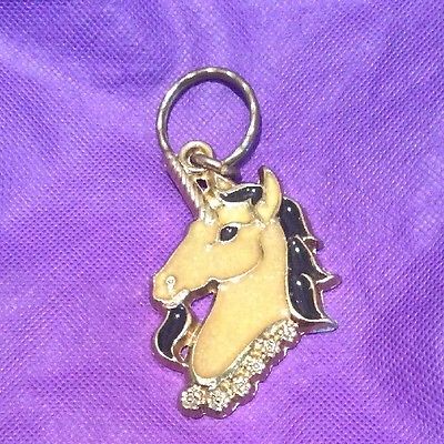 Title (ebay affiliate link): Vintage Unicorn Charm Metal Key Chain Keychain Yellow Gold Black Glitter