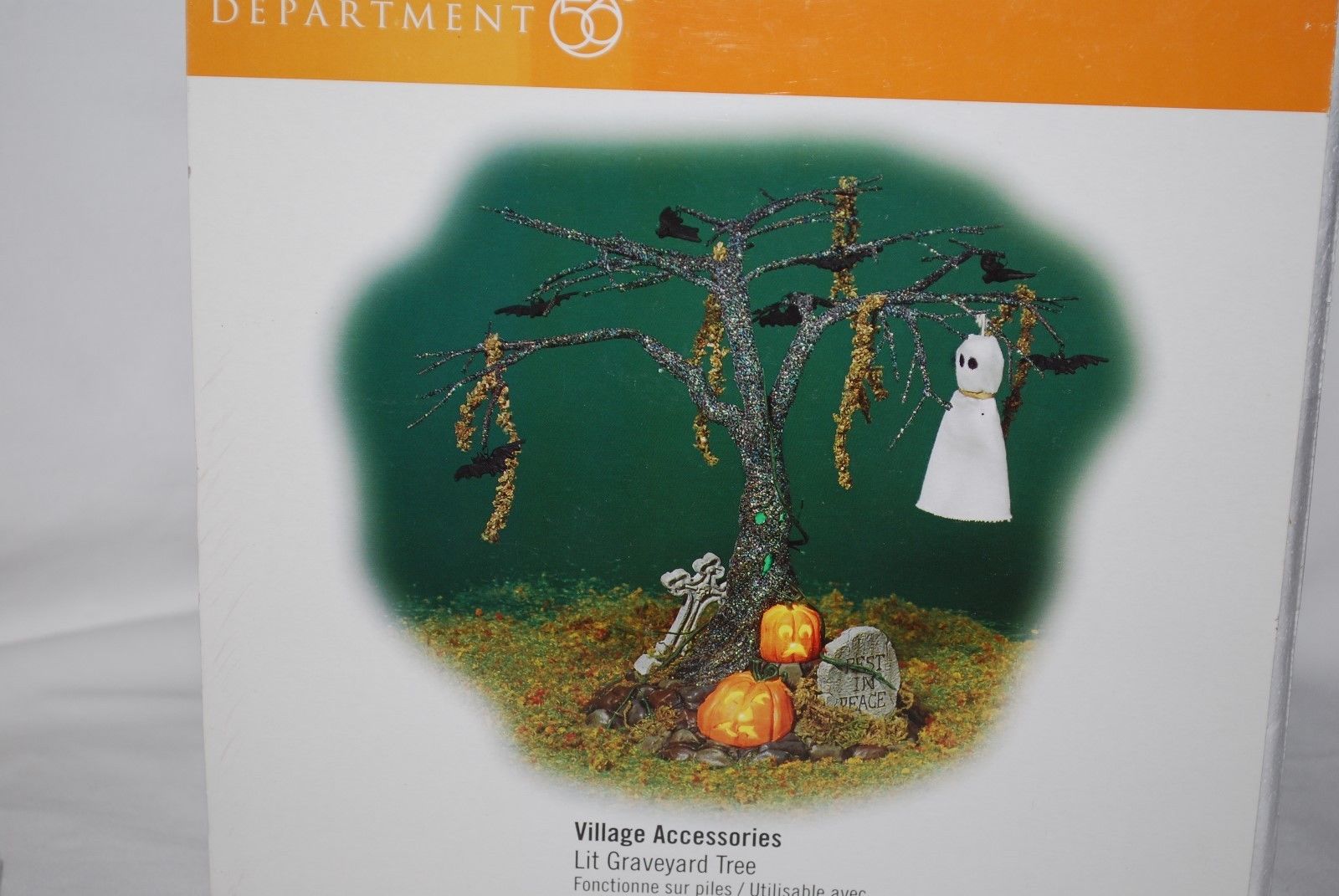 Title (ebay affiliate link): Dept 56 Halloween Snow Village Accessories Lit Graveyard Trees W/box