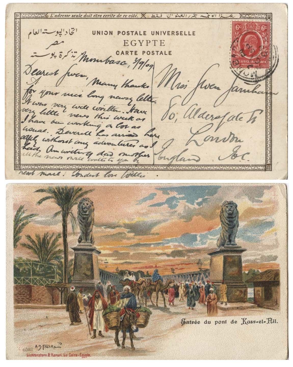 Title (ebay affiliate link): Uganda Egypt Picture PC illustration in Cairo Mailed Mombasa-London 1909.c19