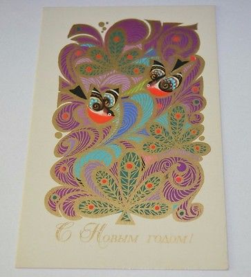 Title (ebay affiliate link): Russia USSR Vintage Postcard Happy New Year Birds 1974