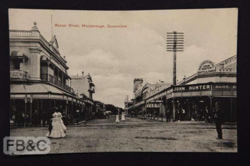 c1900-10 Australian Postcard - Bazaar Street Maryborough QLD