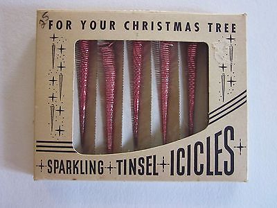 Title (ebay affiliate link): Vintage Box Christmas Tree Tinsel Ornaments Sparkiling Pink Icicles