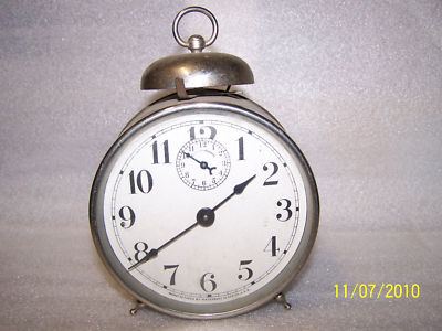 ANTIQUE 1910 WATERBURY TIN CAN PEG LEG ALARM CLOCK