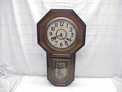 Antique Aichiken Wood Case Key Wind Schoolhouse Clock