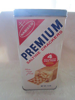 Title (ebay affiliate link): Vintage Nabisco Premium Saltine Crackers Kitchen Tin Canister Can Box 14 oz
