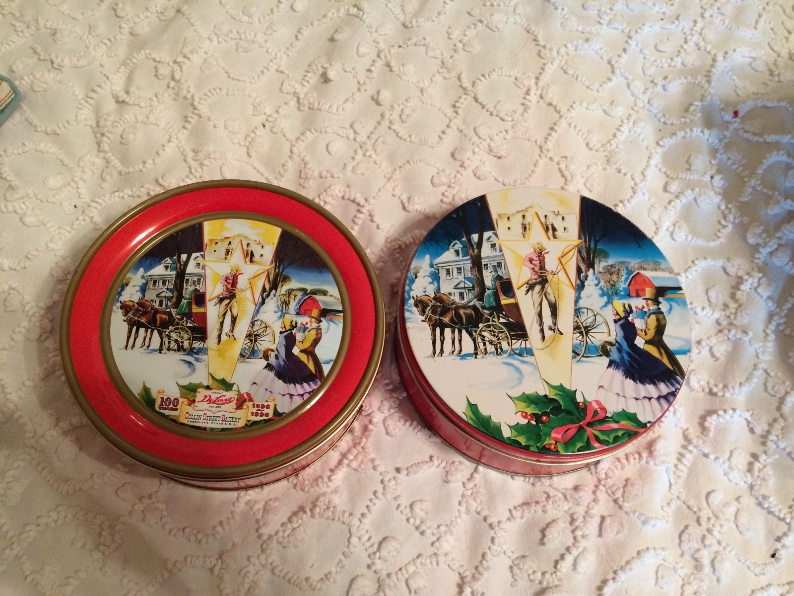 Title (ebay affiliate link): Lot of 2 Fruitcake Decorative Tins Collin Street Bakery Cowboy EUC Gift Box Gag