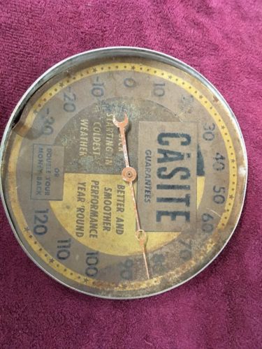 Title (ebay affiliate link): 1950's CASITE MOTOR LUBE round advertising thermometer sign race oil piston rod