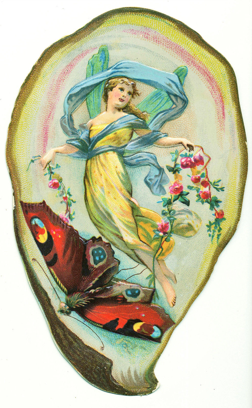 Title (ebay affiliate link): Die Cut Oyster Victorian Trade Card Woman & Butterfly - SUPER BEAUTIFUL EXAMPLE