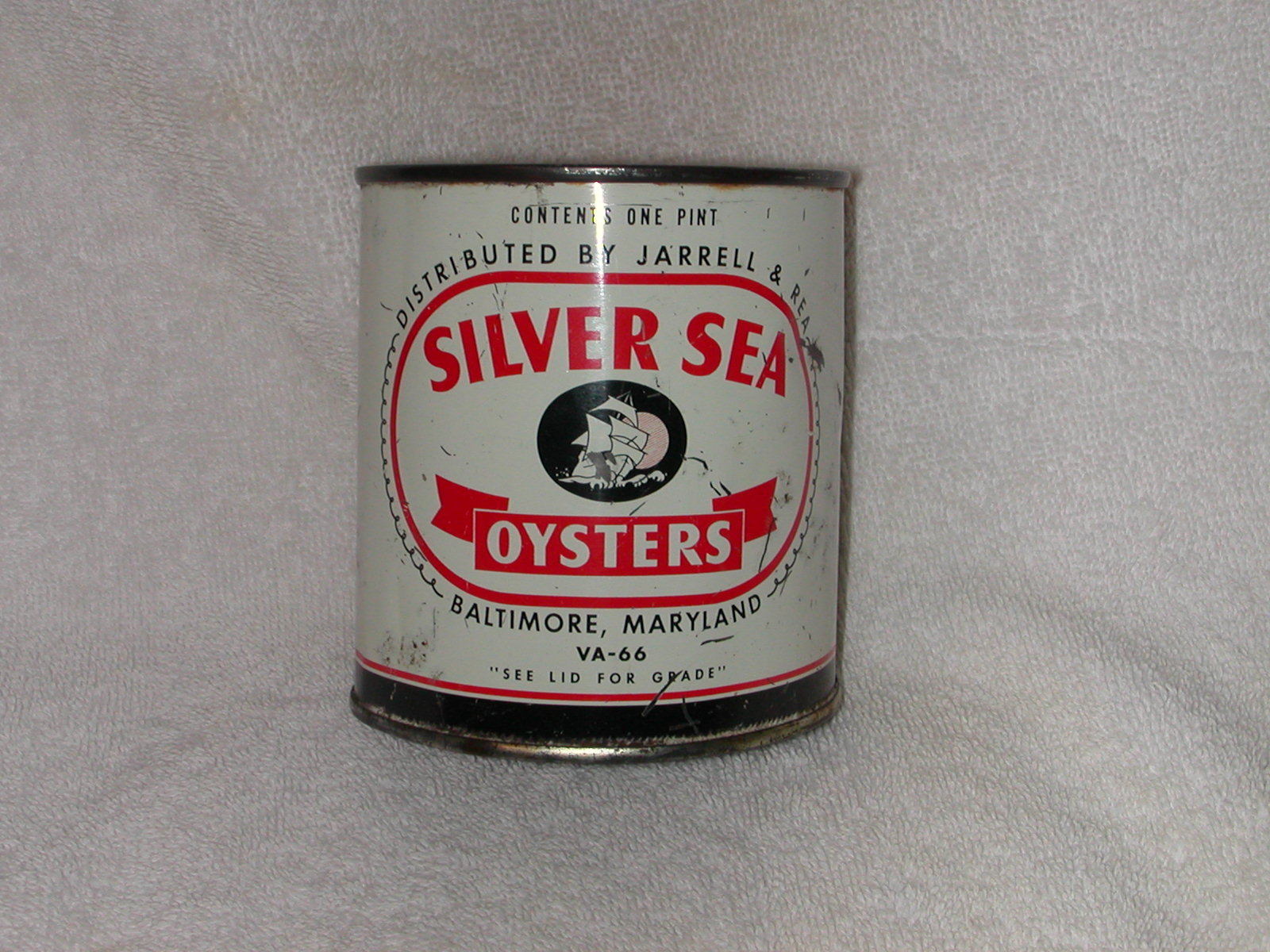 Title (ebay affiliate link): SILVER SEA STANDARD OYSTERS PINT TIN CAN BALTIMORE MD VA-66 JARRELL &REA GC