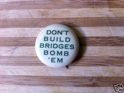 Don't Build Bridges Bomb' em pinback 1960's pro Vietnam War