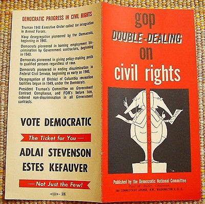 Title (ebay affiliate link): 1956 Civil Rights Stevenson Kefauver Democrat anti GOP Leaflet Anti-Lynching VTG