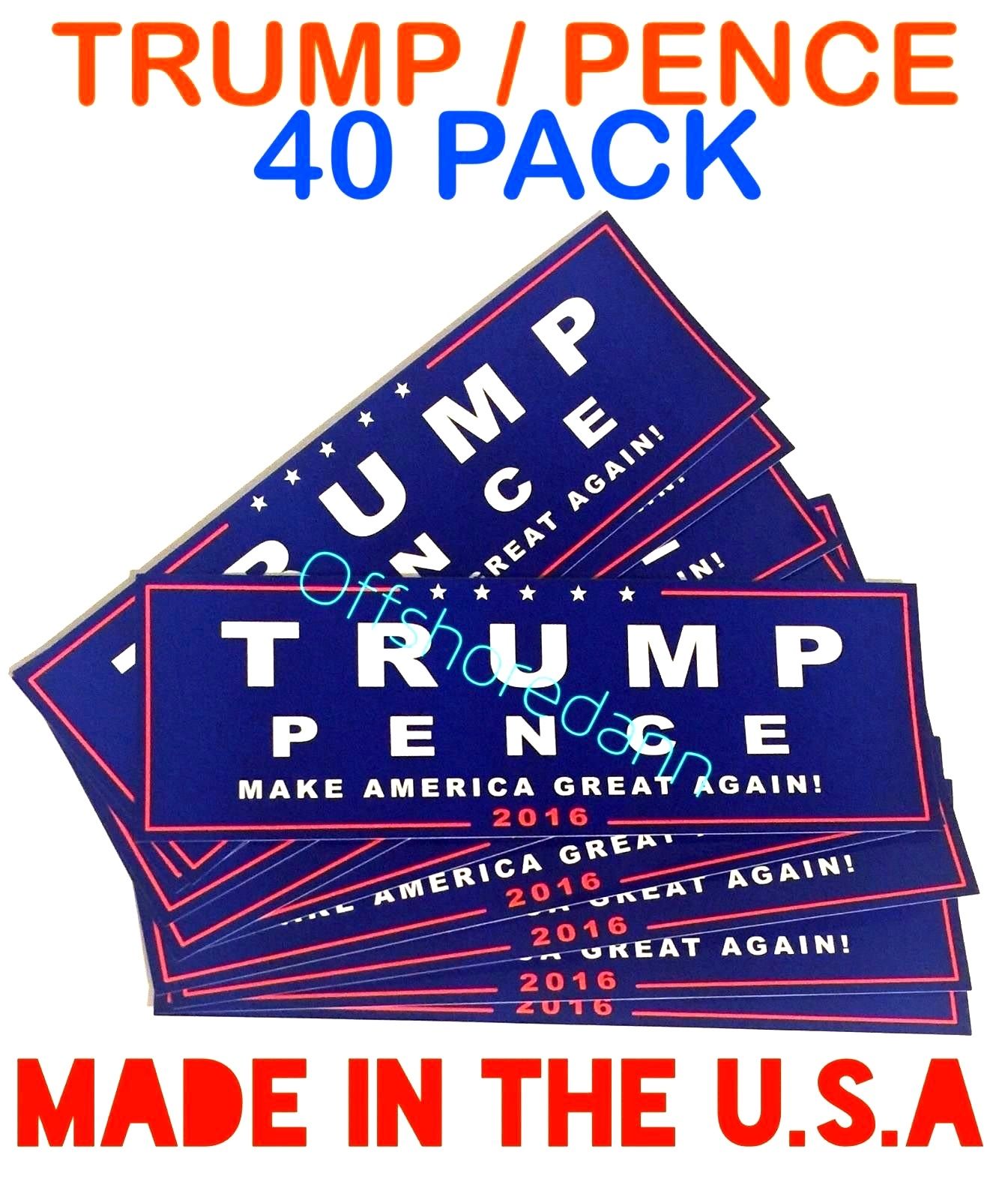 Title (ebay affiliate link): 40 Donald TRUMP PENCE 2016 Make America Great Again! Bumper Stickers