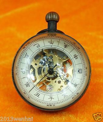 Work good CHINESE OLD BRASS GLASS pocket watch BALL mechanism Clock 2"