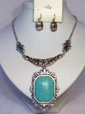 Title (ebay affiliate link): ANTIQUE INSPIRED TURQUOISE + SILVER TONED NECKLACE SET