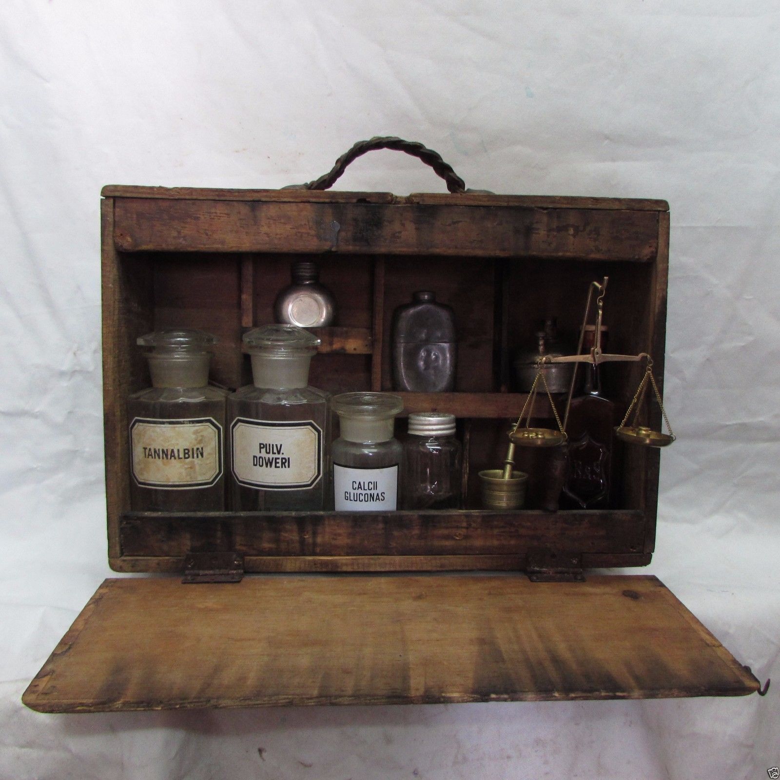 vintage ANTIQUE medical tools doctor's pharmacy chest apothecary MEDICINE EQUIP
