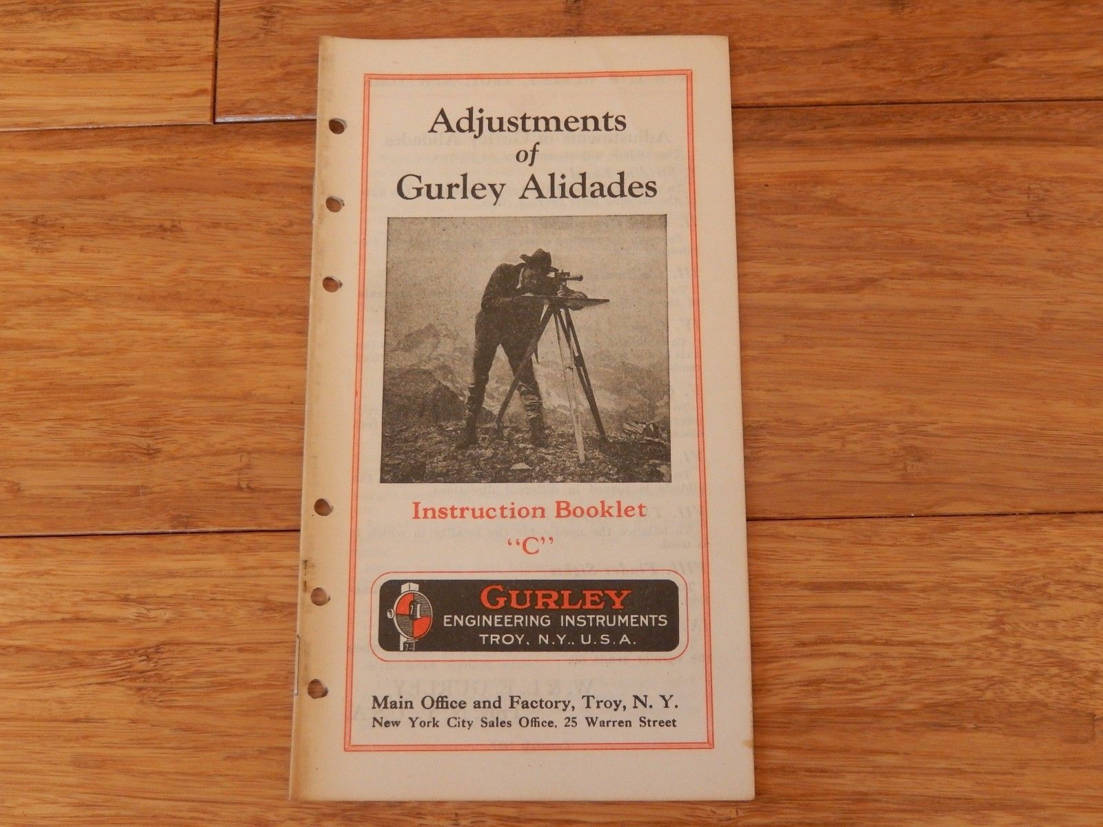 1927 Adjustments of GURLEY ALIDADES Engineering ORIGINAL "C" Instruction Booklet