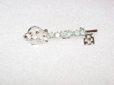 Title (ebay affiliate link): VINTAGE BABY BLUE RHINESTONE ANTIQUE KEY SHAPE BROOCH