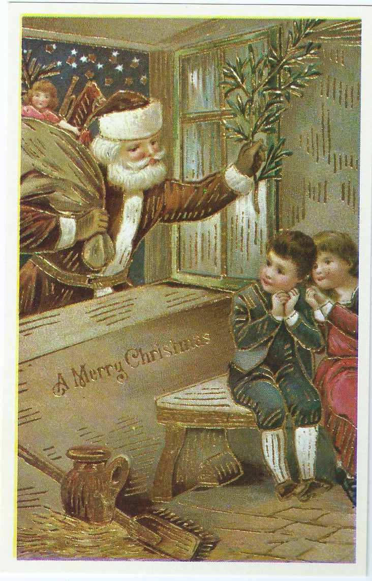 Title (ebay affiliate link): Santa, Bag of Toys, Open Window, Children "A Merry Christmas" Postcard