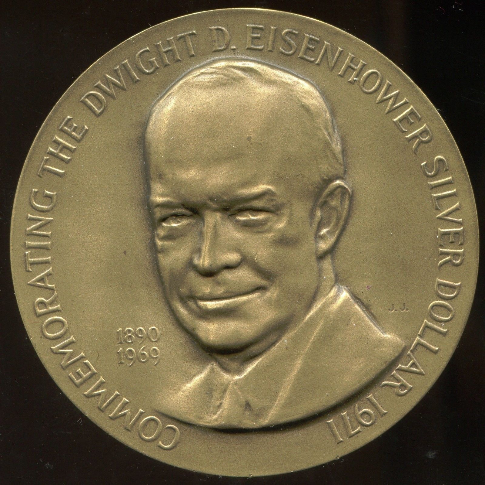 Title (ebay affiliate link): 63mm Medal Commemorating the Dwight D Eisenhower Silver Dollar 1971 Medallic Art