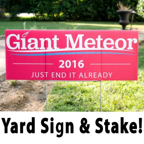 Giant Meteor 2016 Anti Political Party Election Yard Sign w/ FREE Lawn Stake