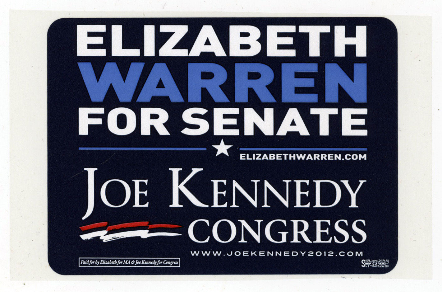 Title (ebay affiliate link): 2012 Elizabeth Warren Senate Massachusetts Joe Kennedy III Lapel Sticker Boston
