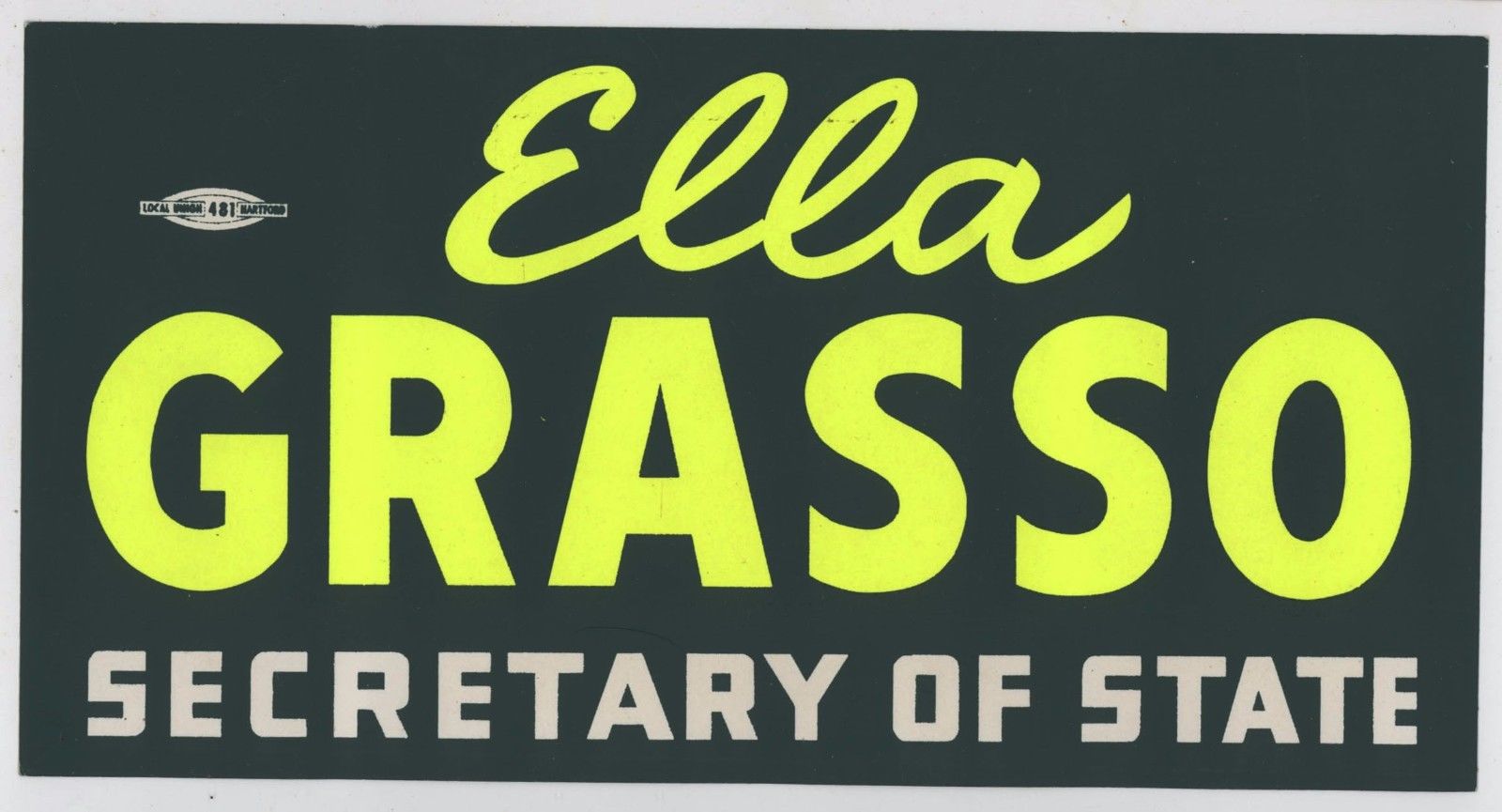 1958 Ella Grasso Connecticut Secretary of State Political Bumper Sticker CT