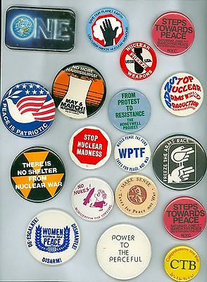 Title (ebay affiliate link): 18 Vintage 1980s Peace & Anti-War Cause Pinback Buttons Power To The Peaceful
