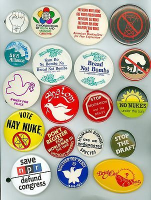 19 Vintage 1980-90's Peace & Social Justice Cause Pinback Buttons Stop The Draft