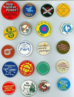 Title (ebay affiliate link): 20 Vintage 1980's Peace & Anti-War Cause Pinback Buttons- The Peacekeepers No MX