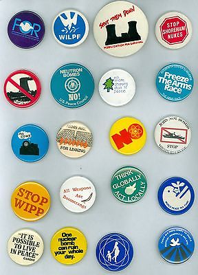 Title (ebay affiliate link): 20 Vintage 1980's Peace & Anti-War Pinback Buttons - Possible To Live In Peace