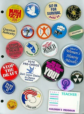 22 Vintage 1970-80's Peace & Social Justice Pinback Buttons - Nuclear Moratorium