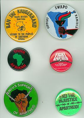 Title (ebay affiliate link): 6 Vintage 1970-90's Black Social Justice & Cause Pinback Buttons Fight Apartheid