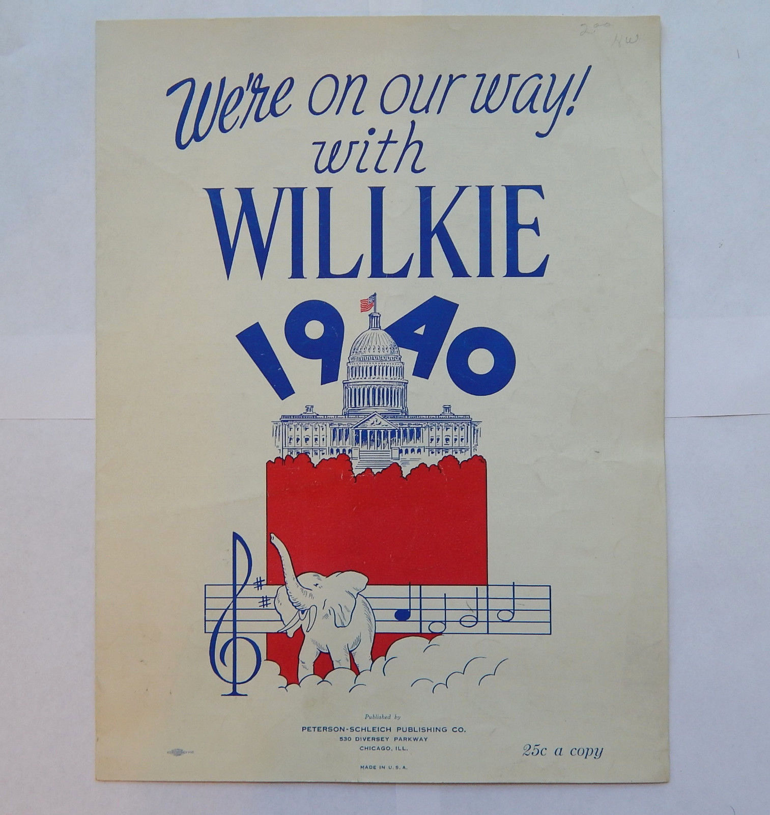 Title (ebay affiliate link): We're On Our Way with Willkie (1940) Wendell Willkie Sheet Music