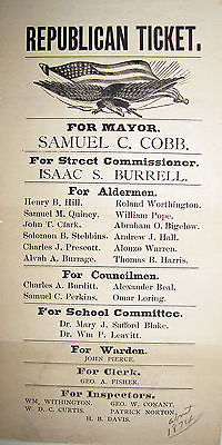 Title (ebay affiliate link): POLITICAL BROADSIDE THE REPUBLICAN TICKET FOR MAYOR SAMUEL C. COBB 1874 MASTHEAD