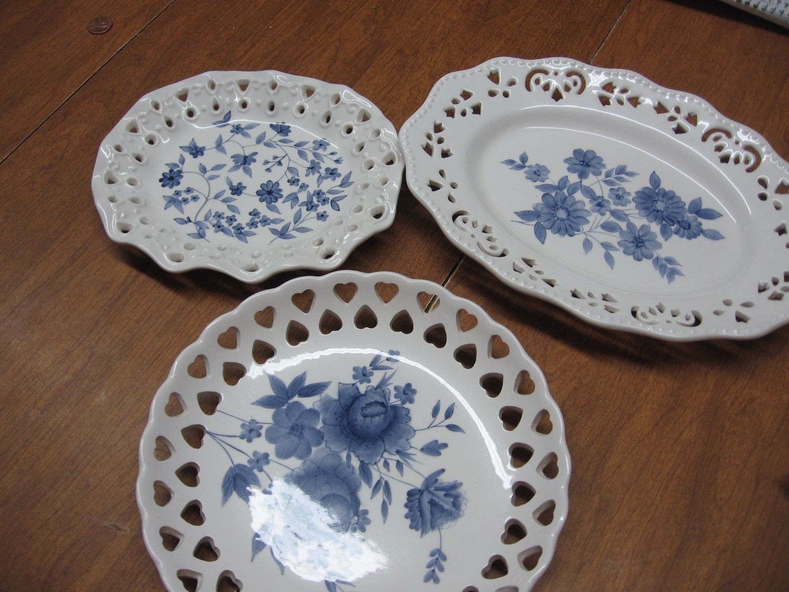 HOME INTERIORS 3 PIECE BLUE & WHITE DISHES