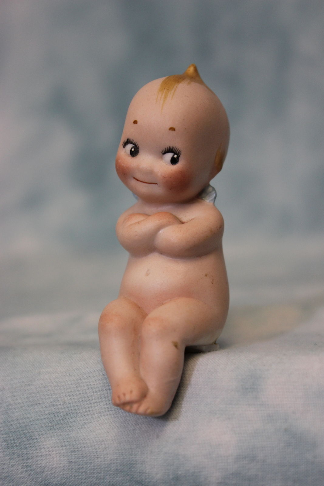 Title (ebay affiliate link): Antique 3.5" German Rose O'Neill Crossed Arms Sitting Kewpie w. Blue Wings 1913