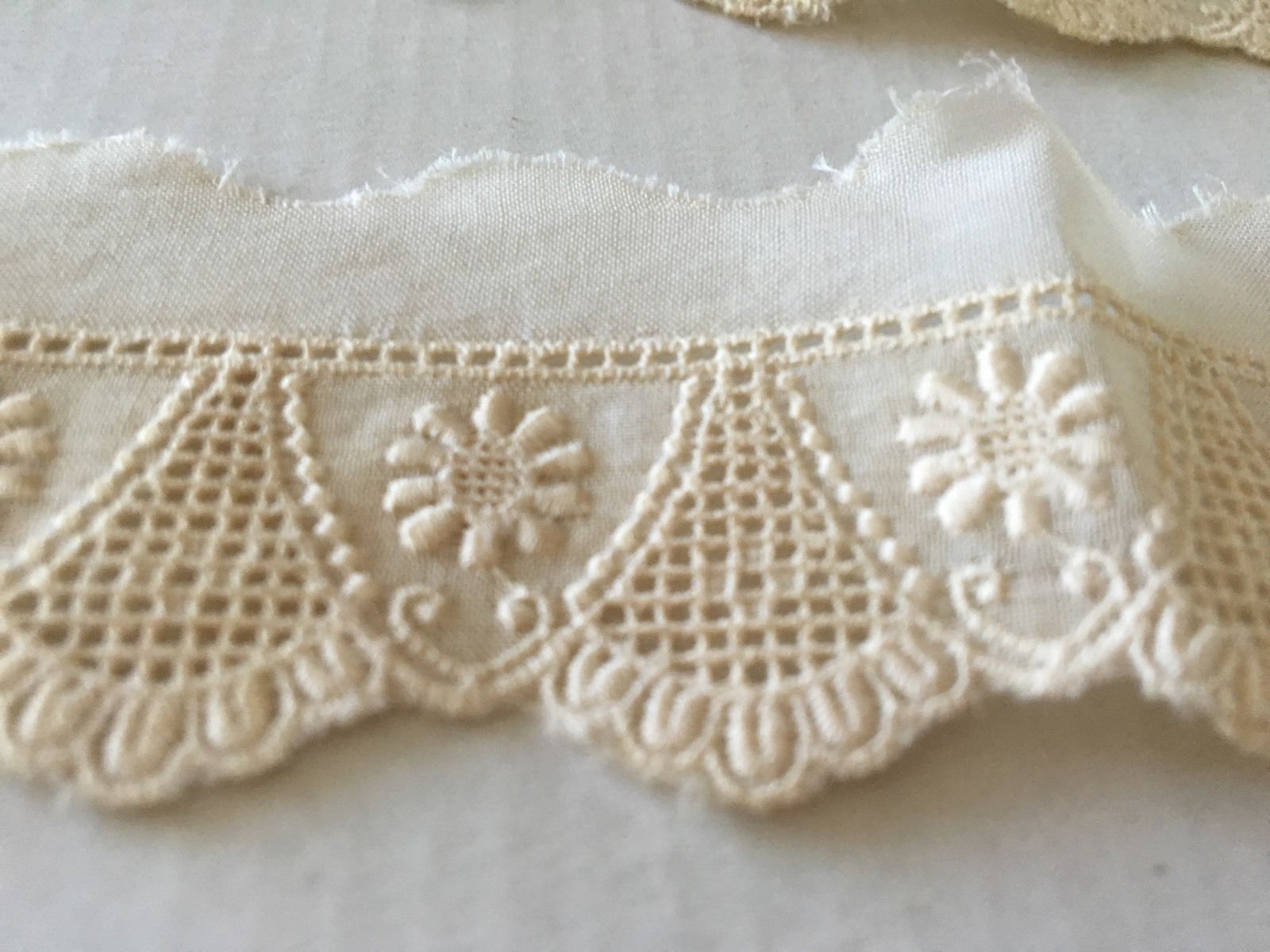 Title (ebay affiliate link): 1 Yard Antique Vintage Cream Lace Trim Craft Flower Eyelet Dolls Bears