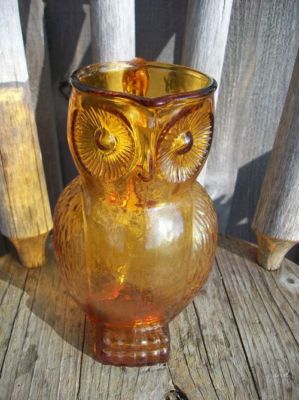 Title (ebay affiliate link): Vintage Depression Glass Owl Pitcher Mint Amber 8.5"